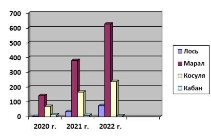 по данным фотоловушек за 2020-2022 года мы отразили в Таблице 1 и Диаграмме 1.
