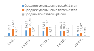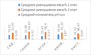 В лабораторных условиях вместе с моим научным руководителем было проведено определение кислотности почвы в солевой вытяжке по ГОСТ 26483-85. На диаграмме 2 представлены результаты определения рН сол в почве и изменение веса пакетиков чая.